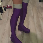 Construction: Believe it or not, I'm not very good with stretchy fabrics! I used purple and silver lycra, and used the same silver fabric to cover the armor parts which are made out of craft foam. I was having issues with body paint, so I tried Mehron Paradise water based and I loved it! I also ordered my wig from Amazon and cut and styled the wigs using a steamer